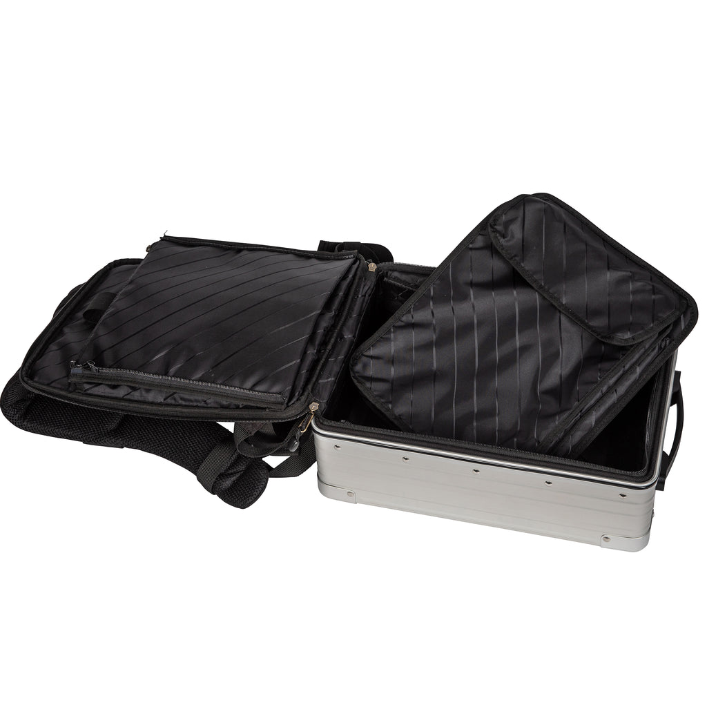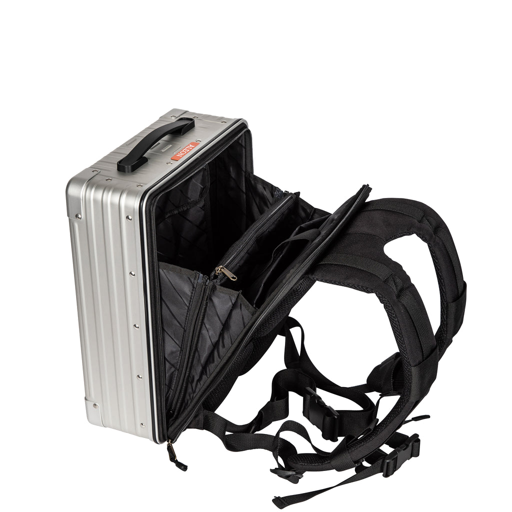 Designed for efficiency, this aluminum backpack features a padded sleeve to protect your laptop or tablet, plus a clever wall panel to store pens, gadgets, and travel essentials. Its structured interior keeps everything exactly where you need it, making it easy to transition from workdays to weekend adventures. With 15L of storage space, it offers ample space without sacrificing portability.